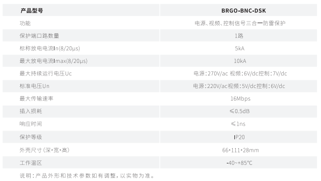 適用于云臺型監(jiān)控攝像機,對監(jiān)控攝像機的電源線路、視頻線路和控制線路進行防護,免受雷電損害。